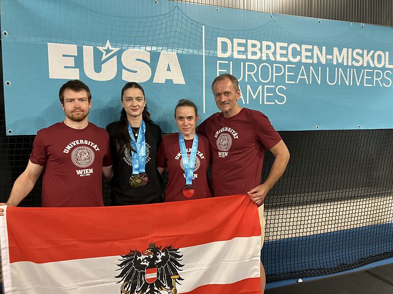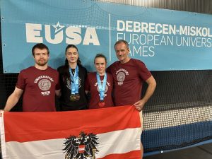 Die ersten drei Sportarten sind abgeschlossen und die Studierendenathletinnen und -athleten bei den EUG in Ungarn brillieren mit 1 Gold-, 2 Silber- und 3 Bronzemedaillen. In den nächsten Tagen stehen noch Wettkämpfe im Fußball, 3×3 Basketball, Basketball, Beachvolleyball, Karate, Tischtennis, Taekwondo und Tennis an.